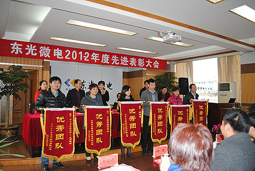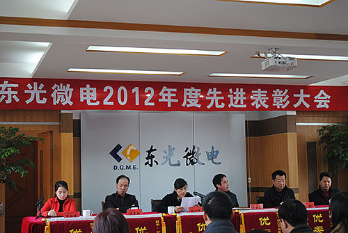 公司董事长沈建平先生致辞,肯定了广大员工在过去一年的辛勤努力,为大家做出的业绩表示感谢。同时也展望了2013年公司奋斗目标,希望广大员工齐心协力、众志成城,为创造东光微电下一年的辉煌而努力。之后,大会宣读了对先进个人以及团体的表彰决定,公司高层领导为各位先进人员颁发了获奖证书,希望受表彰的优秀团队和先进个人珍惜荣誉、戒骄戒躁,充分发挥先锋模范带头作用,在新的一年里再创佳绩、再立新功。最后,先进代表上台发言,表示会再接再厉,恪尽职守,将自己的工作做的更好。