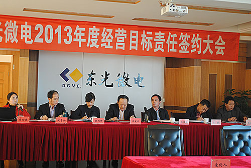 会上,公司董事长沈建平先生发表了重要讲话,希望通过目标责任制的落实,进一步提升公司管理水平,增强执行意识和责任意识,更好的达成2013年度经营目标。之后,东光微电管理层以及各子公司负责人分别与公司签订了责任书。
