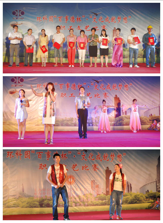 为加快推进企业文化、激发职工的内在动力,满足广大职工的精神文化需求,促进企业文化和职业文化事业的繁荣,经环科园总工会研究,决定举办环科园“百事德杯”“文化成就梦想”职工文艺比赛。我公司精心排练了由王荣美等人表演的音诗画《中国“芯”,东光梦》、吉宁、唐涛表演的相声《大驾光临》在8月15日的预选赛23个节目中脱颖而出,被选至8月22日晚参加氿南风光带的决赛,最后两个节目全都取得第三名的好成绩,在此向他们表示热烈的祝贺!